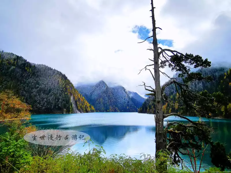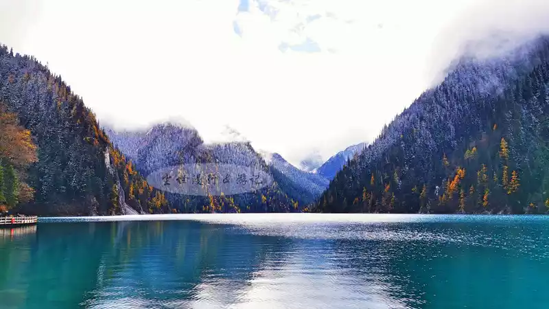 In front of the Peacock River is the Golden Bell Sea, named because the two lakes, one large and one small, are closely connected and resemble copper bells.Jinling Sea is 2,455 meters above sea level, 16 meters long and 26 meters deep, and is a dammed lake, of which the small lake is 103 meters deep, which is the deepest of all the lakes in Jiuzhaigou.