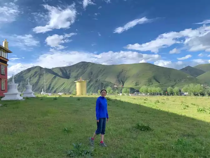Sure enough, it rained, and the sparse raindrops fell down, and we took shelter from the rain next to the prayer wheel.