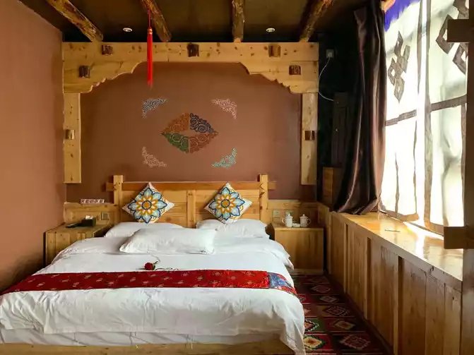 stayed in the scenic area of Aden Village, at an altitude of 4,000, on a cold rainy day, we both got into the bed, rested early, saved up our physical strength, and traveled a long line tomorrow, going to the Luorong Cattle Farm, going to the milk sea and the five-color sea.