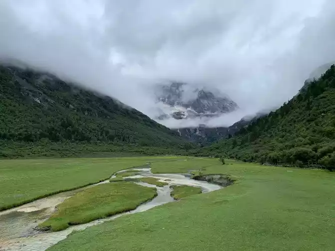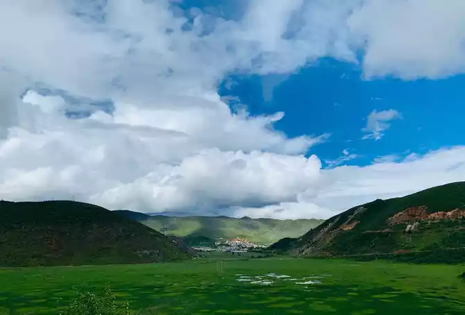 The meadow of the Luorong Cattle Farm seems to be larger, and the sacred mountain Yang Maiyong (Manjushri Bodhisattva) is filled with clouds and mist, refusing to reveal the mysterious peaks.