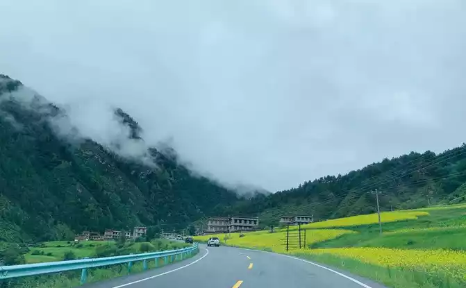 In the early morning of the light rain, the clouds were shrouded in mist, and the rapeseed flowers were blooming just right, and I was about to leave Aden today.