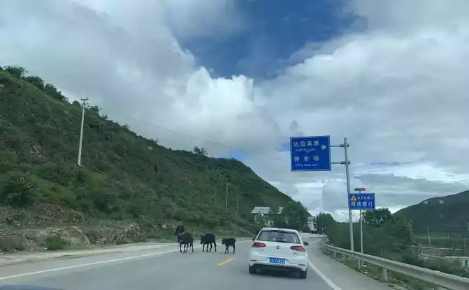 the way back to the hotel, there were yaks everywhere, and these yaks crossed the road so consciously that they waited on the side of the road and saw that there were few cars on the road before jumping off the platform and galloping past.