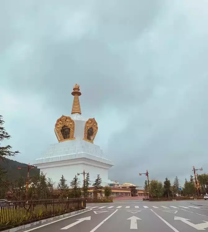 (The Great White Pagoda of Shangri-La is built according to the method of the Tibetan Buddhist pagoda in the form of a tower within a tower, and the four Buddha niches of the pagoda are enshrined with a statue of Guanyin with four arms, Manjushri Bodhisattva, Master Padmasambhad, and Master Tsongkhapa, and all religious ceremonies are jointly agreed upon by the eminent monks of the four major sects of Tibetan Buddhism (five major monasteries) in the territory, and then passed through the living Buddha of Songzanlin Monastery? Lu Rong Yundan will be implemented after it is determined. The outer tower is 108 meters high, the base is 70 cubic meters, and the inner tower is 33 meters high. It is the tallest and largest Buddhist white pagoda in the world today. )