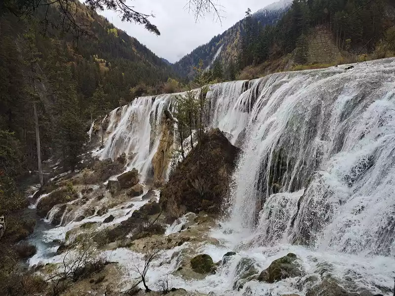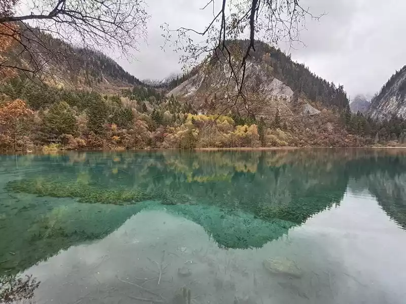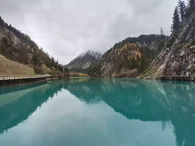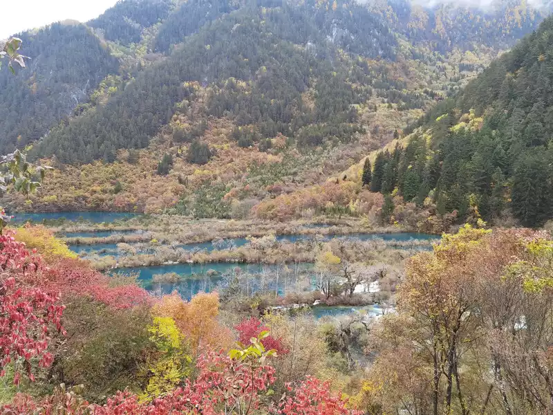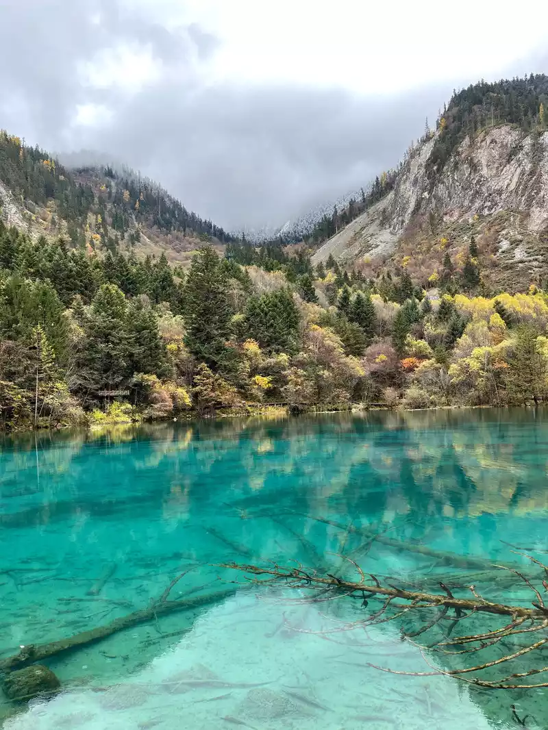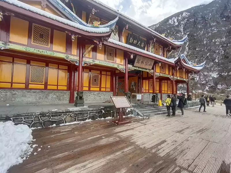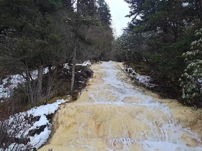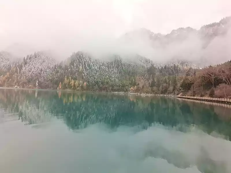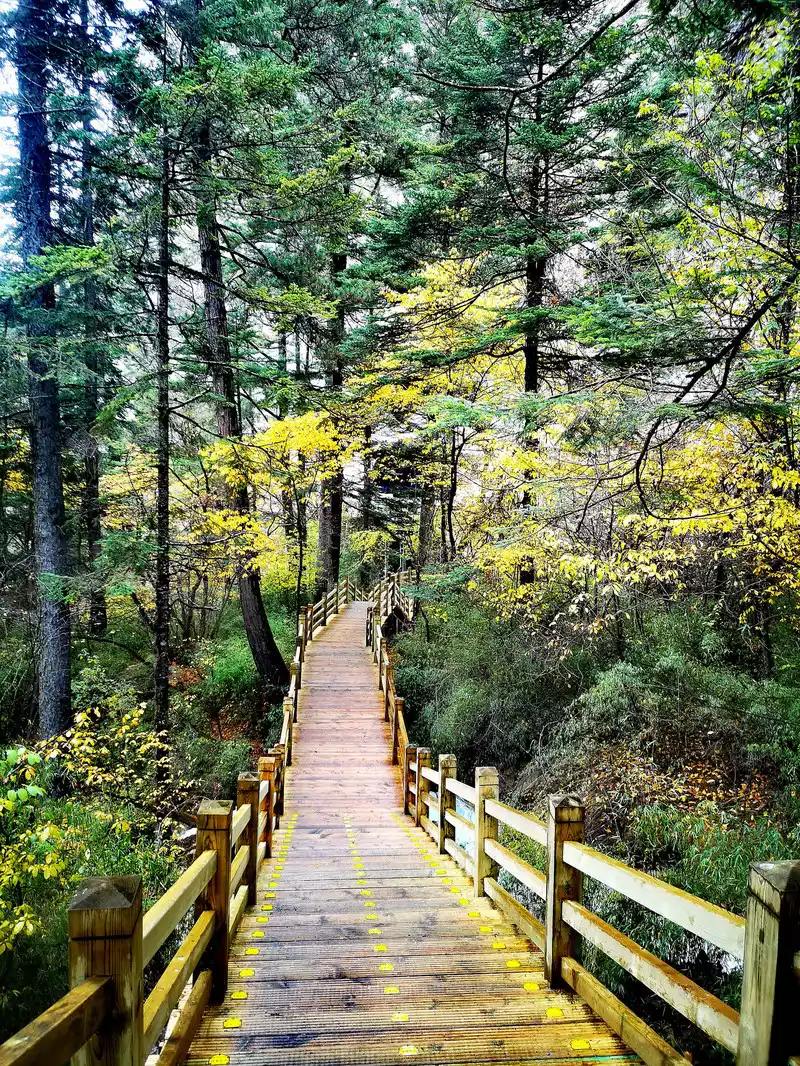 At seven o'clock at the end of October, Chengdu set off at dawn, and the driver chose the western route, going to Huanglong and Jiuzhaigou, with a total distance of about 430 kilometers. For a person who has lived in the east of the motherland for a long time. Everything is fresh along the way. Dujiangyan, Wenchuan, Maoxian, where the mountains still have traces of earthquakes, the continuous mountains, and even the shiny snow on the top of the mountain. It is worth mentioning that after lunch, the driver reminded that the down jacket in the suitcase should be taken out, and with the sudden rise in altitude, the temperature plummeted, and snowflakes could gradually be seen. Some people even have altitude sickness, which needs to be prevented. We arrived at Huanglong Scenic Area at around three o'clock in the afternoon, and we could eat and stay near Chuanzhu Temple, and the price would not be very expensive.