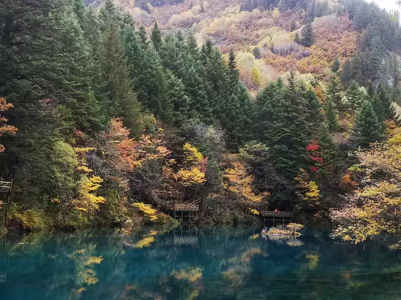 Jiuzhaigou Scenic Area is Y-shaped, with sightseeing cars as the main transportation, on call and stop, from the visitor center, to Nuorilang Center Station, you can choose the east and west lines, a primeval forest at the end, and then take a sightseeing bus or hike back to the sightseeing bus or hiking tour, Swan Sea, Arrow Bamboo Sea, Panda Sea, Pearl Beach and other attractions are on this line. The other one is to go directly to Changhai, and then take the sightseeing bus back, with colorful stones, the upper seasonal sea, and the lower seasonal sea. The two routes have their own characteristics, the ink paintings of the long sea and the colorful landscapes of the primeval forest.