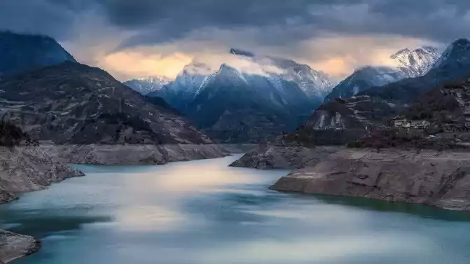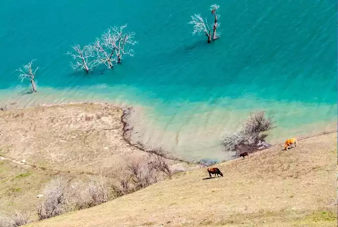 There are many seas here, and when the light and shadow are just right, the blue sea embraces the reflection of the mountain peaks into its arms, and the lake and mountains are integrated, and at that moment, the middle