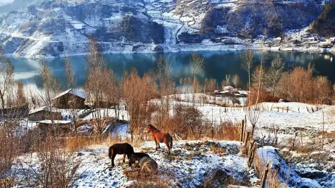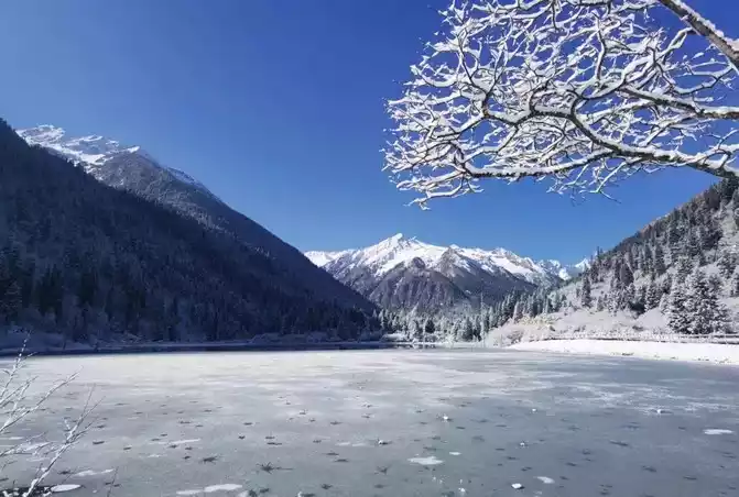 The blue lake is like the eyes of the gods, it is rumored that this place is the place where the gods live, I think, the pure white snow and the blue lake, is the most beautiful color scheme this winter!