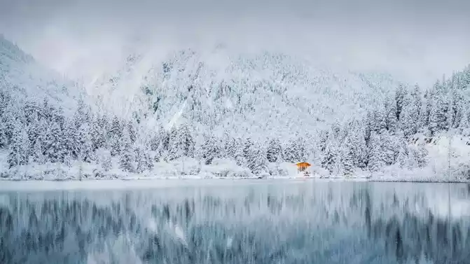 It's amazing, hidden in a beautiful otherworldly around the city, mountains, lakes, primeval forests...... Goose feathers and heavy snow fell on his shoulders, and if the temperature was low, Hayne's beautiful rime glowed silver under the plateau sun.