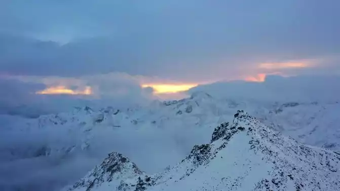red light on the distant mountain is like the universal light of the gods, that is the sunset jumping on the top of the snow-capped mountain, standing on the mountain peak for ten thousand years, at this moment like an awakened black knight, as if seeing that ancient era, Their heroic fight!