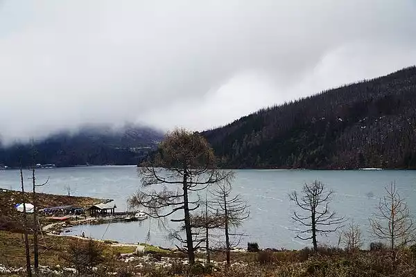 In the afternoon, we entered Mugecuo, which is the place of Kangding love songs. On the scenic highway, we were surprised to find that at an altitude of 3,000 meters, the trees were dressed in silver, and the top of the mountain was covered with snow. The tour guide said that there are very few glaciers here, and what you see is the wind and snow that came all night last night. Everyone got excited all of a sudden. Yesterday in Hailuogou, I was going to see the lowest latitude glacier in the world. It's just that the ropeway is out of service, and it is heavy rain, and we missed it with that glacier. Today, we not only see pieces of silver wrapping, but also a very tall Baektou Mountain. Moreover, from 2 p.m., the snow flew all over the sky, all the way from the scenic spot to the night in Kangding. God really cares for our family and friends.