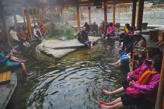 ▲Everyone soaked in Mugecuo Hot Spring