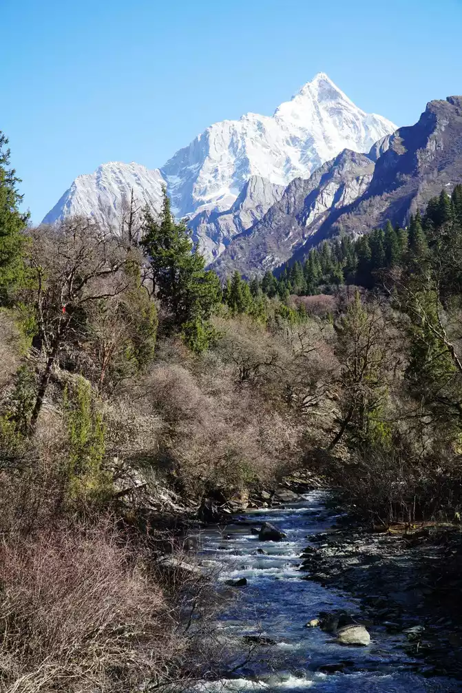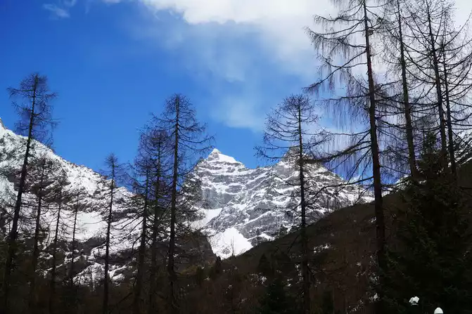 The main peak of the mountain is 6,250 meters above sea level, which is a key mountain for hiking and mountaineering vigorously promoted by the state. The mountain is located 16 kilometers away from the Changpinggou hike, so most tourists cannot see the whole picture of Siguniang Mountain. Compared with the Shuangqiaogou I visited yesterday, the scenery is a little monotonous.