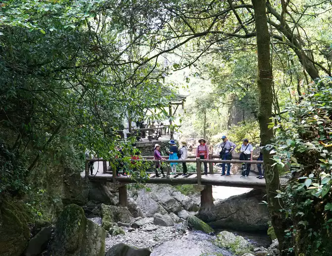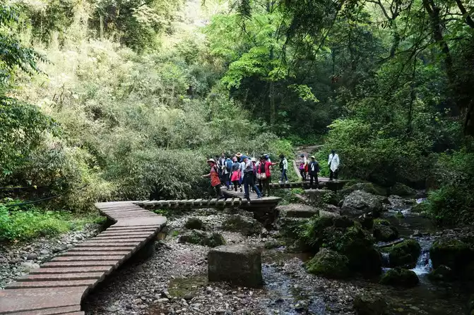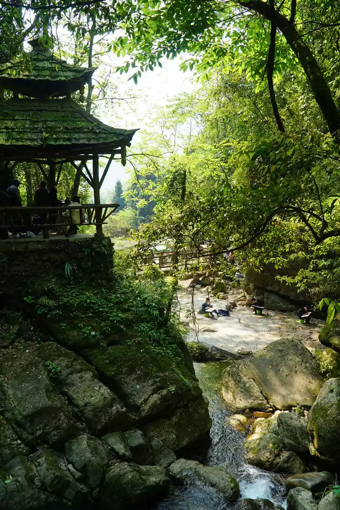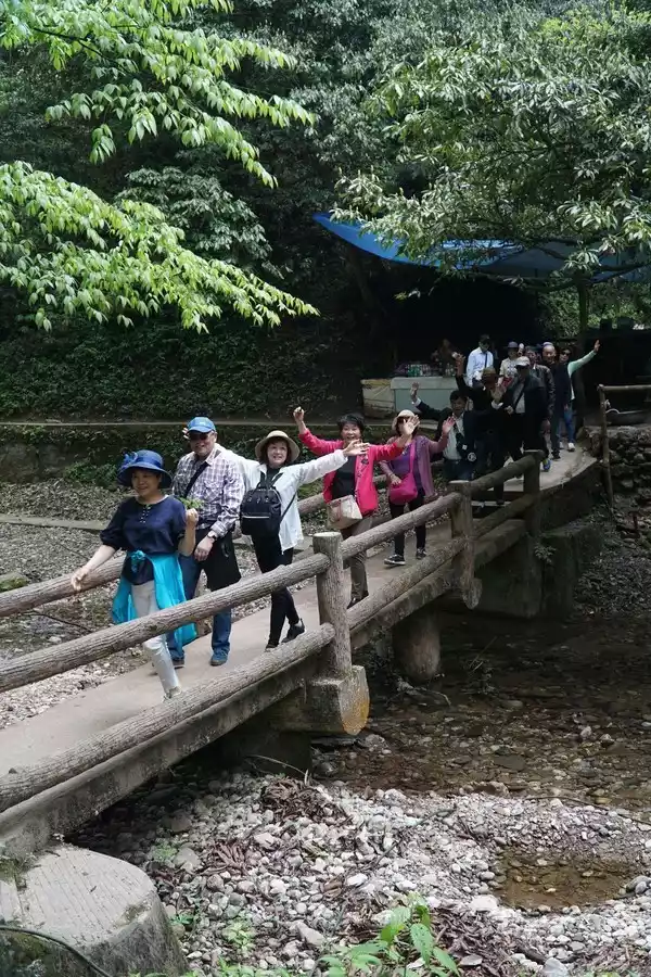 April 18 Qingcheng Mountain is divided into front mountain and back mountain, the front mountain is Taoist culture, and the back mountain is a good place for hiking and leisure. We went to the back mountain. The cable car took us to the first stop, and the guide said that if you want to go to the top, you will have to hike for another 2 hours, and then take the second cable car to the top. For our family and friends group, heading to the top of the mountain is powerless.So, we spent 2 hours going down the mountain. The mountains and rivers along the way are beautiful and the air is excellent. Everyone danced together from time to time, and cheerful laughter sprinkled among the mountains.
