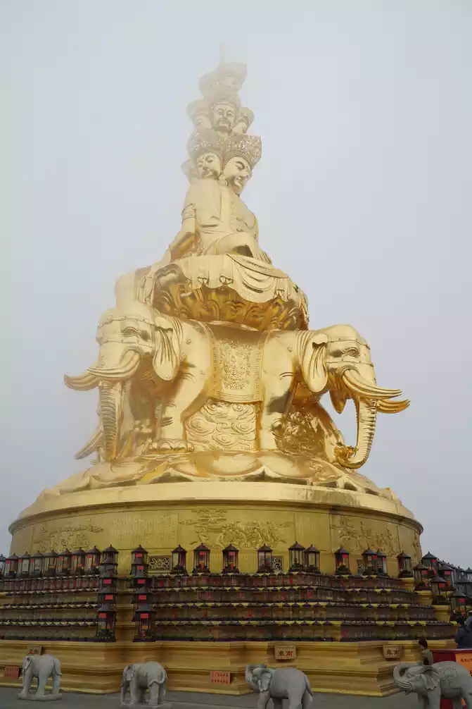 On the way to the Golden Peak, some people in our team took heart-saving pills from time to time, more than 3,000 meters, and it was thick fog and panting. Strangely, there are no mountains and forests around the golden dome, and the big Buddha only occasionally has a cloud floating by, and the golden light shines on the golden peak.