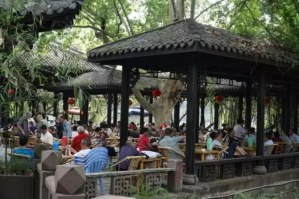 People's Park allowed us to see the leisure of Chengdu people: we walked to two places, each with hundreds of mahjong tables, hundreds of old men and women, some still eating, and some have started the second half of the day. For 18 yuan per person here, you can play mahjong for a day. Drinking tea, the lowest Emei fragrant tea is 13 yuan, and lunch is about 15 yuan.