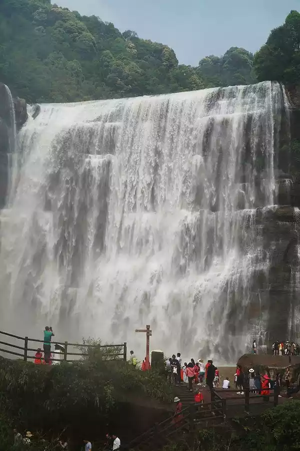 4 yuan 21 Say goodbye to the slow life in Chengdu, drive 300 kilometers in 5 hours, arrive in Chishui, Guizhou, and visit Shizhhangdong Waterfall, which is the largest waterfall in the Yangtze River Basin. It is 76 meters high and 80 meters wide, and it is also the largest waterfall in our country's Danxia landform. When we entered directly in front of the waterfall, dense water droplets hit our faces with the help of the mountain breeze. To protect the camera, we had to leave quickly and look for another photo platform.