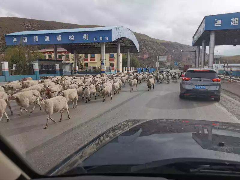visiting Langmu Temple, We ate a bowl of beef noodles without beef on the main street of the town and set off for Jiuzhai. On the way, I met the sheep at work.