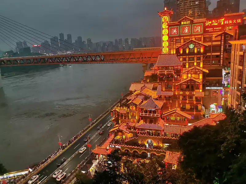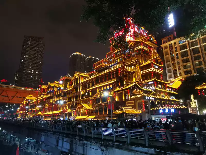 However, this Hongya Cave is really only for distant viewing, not up close, the shops inside are very messy, most of the street stalls, food stalls, can't seduce our interest, after taking photos, run away.