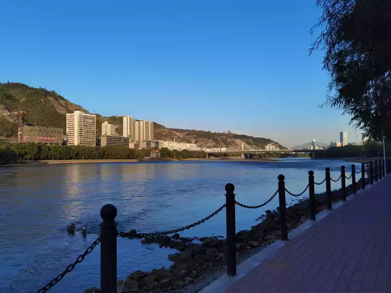 In case they couldn't find a parking lot, the two old guys decided to go green. In about fifteen minutes, we arrived at the Yellow River. The landscape roads on both sides of the Lanzhou Mother River are very well done, which changed my previous feeling of Lanzhou's gray and dark roads.