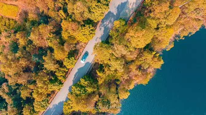 Through the winding woods, you will be greeted by a road around the lake like a coastal road.