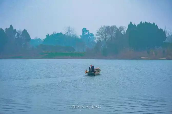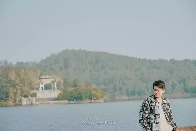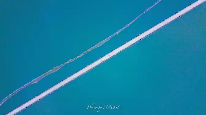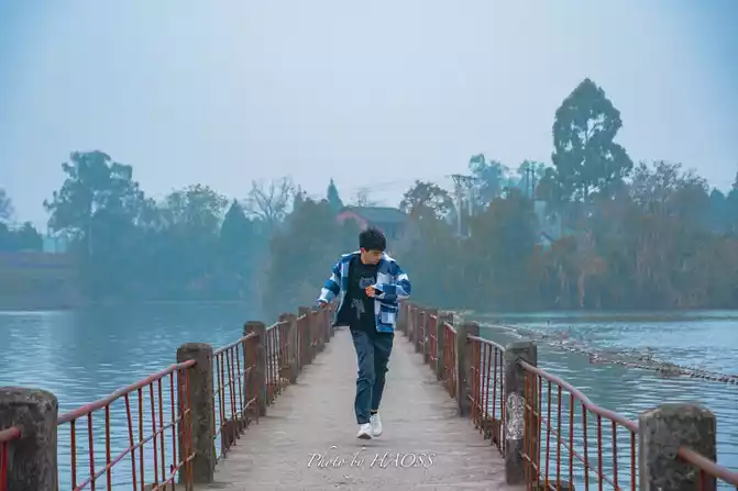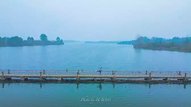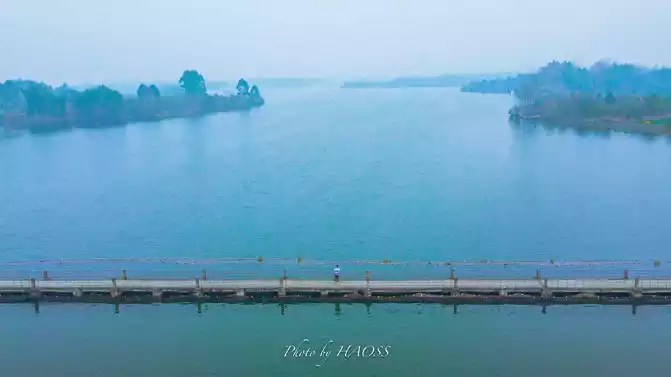 The lake is wide, the plank road is narrow and long, and the composition is very good.