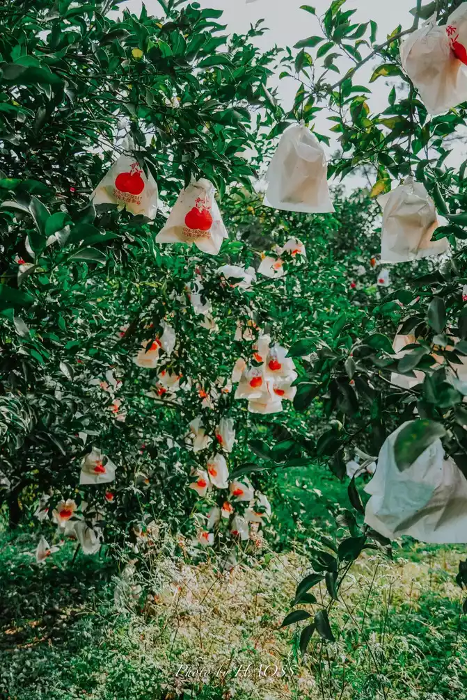 of the tangerines here are covered with paper bags when they are on the trees, and when they understand it, they know that this is to reduce the exposure of pests and diseases and pesticides, so that the fruit can grow better.
