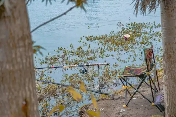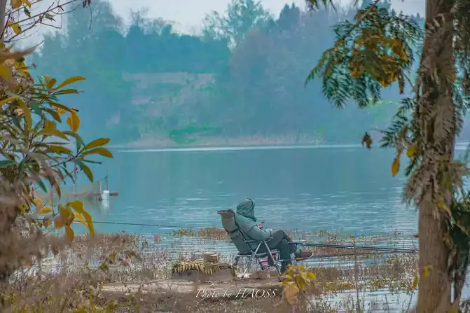 Wrapped in warmth, curled up, sitting quietly on a chair, looking at the calm water motionless, waiting for the big fish to take the bait.