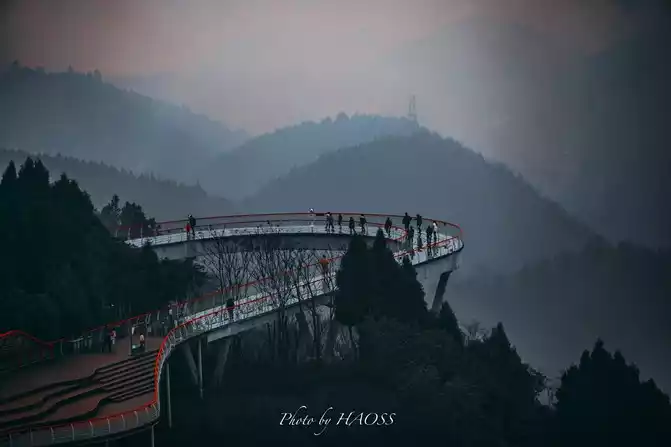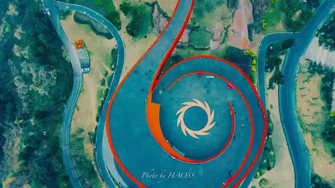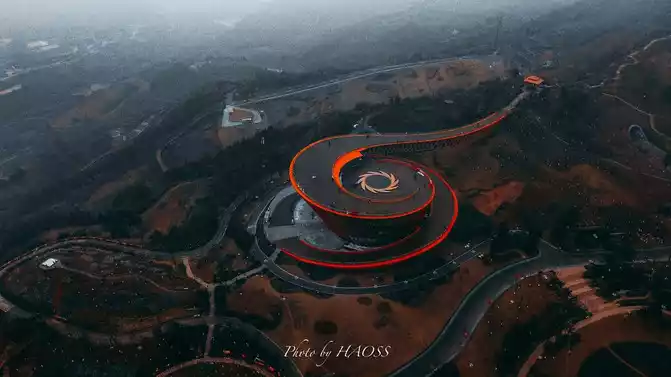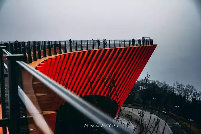 Danjingtai is a new check-in landmark that has suddenly become popular in recent times. It is at the highest point of the Danjing Mountain ridge in the Longquan Mountains. Its spiral upward plank road and circular curve, looking down from the air, resemble a sun god bird.