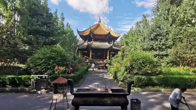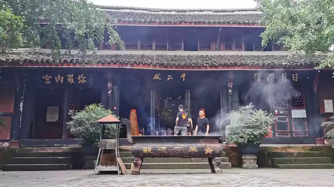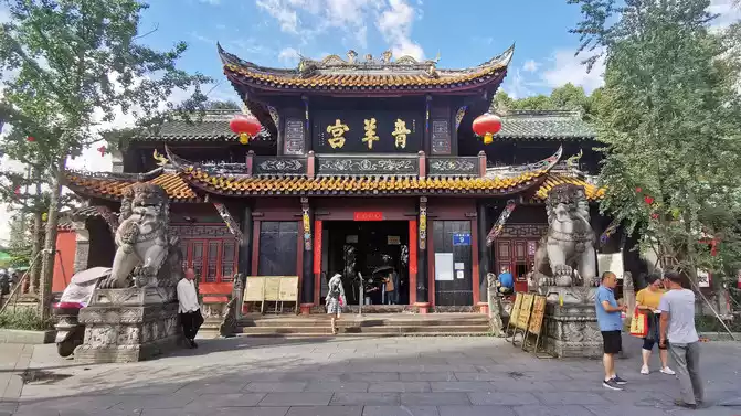 Qingyang Palace Qingyang Palace is located between the wide and narrow alleys and Du Fu thatched cottages in the city, across the road from the hotel where he stays, and is known as "the first Taoist temple in western Sichuan" 。