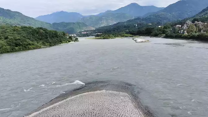 The fish mouth is at the front of the watershed and is named because it is shaped like the head of a fish. It divides the river into two streams, the western one is called the outer river, which flows down along the Minjiang River; The eastern one is called the Neijiang River, which flows into the Chengdu Plain through the mouth of the treasure bottle.
