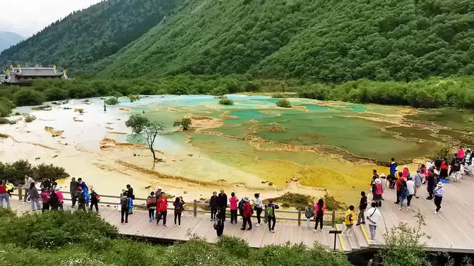 进入黄龙景区,一组组钙华池群令游客瞠目。
