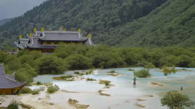 黄龙寺位于黄龙沟最上端的五彩池前边,建于明代,相传黄龙助大禹治水有功,后人在此修庙奉祀。