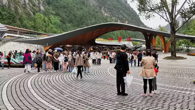 九寨沟景区呈“Y”字形。“Y”的下支是景区的大门,叫树正沟,左支叫则查洼沟,右支叫日则沟。景区很大,从大门到则查洼沟尽头的长海有30多公里。景区观光车循环运行,停车点随意上下,比较方便。游客一般是从景区大门直接到终点长海,然后向下游览。