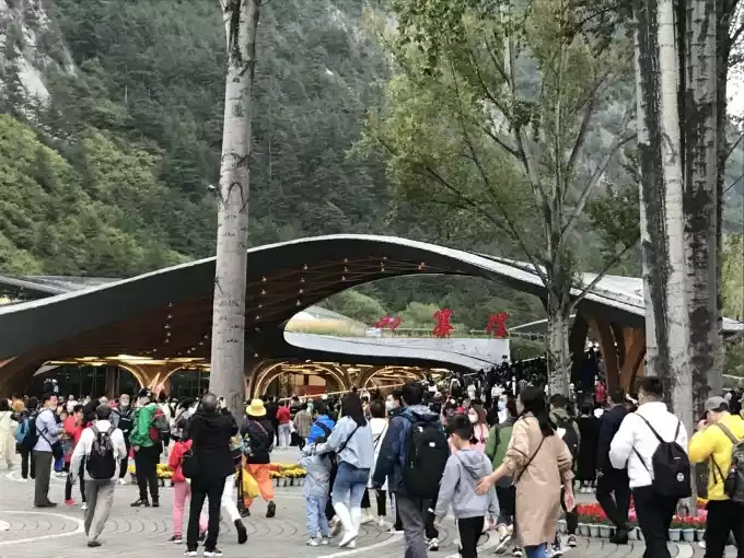 This is the flow of people at the gate of Jiuzhaigou Scenic Area at 7:00 a.m. on October 3, which is already very considerable.