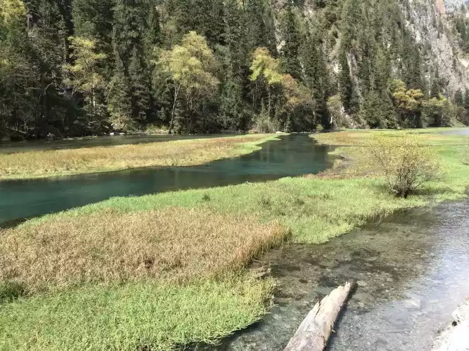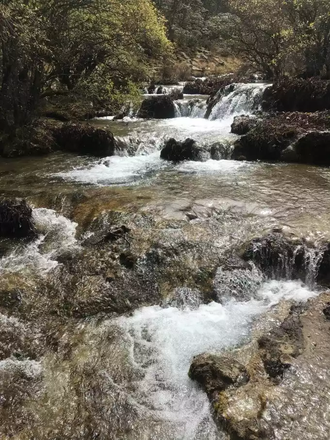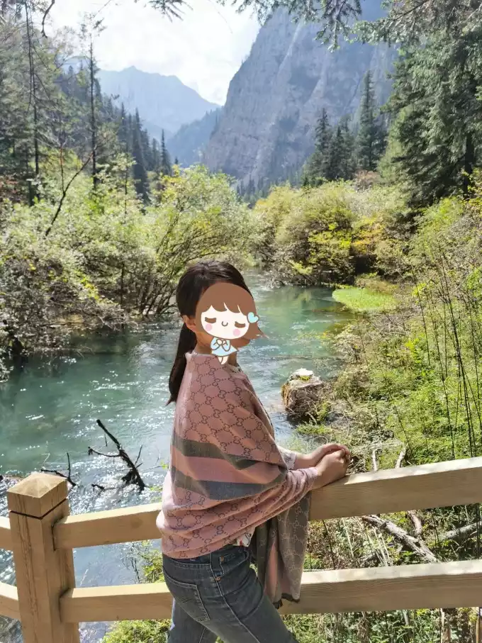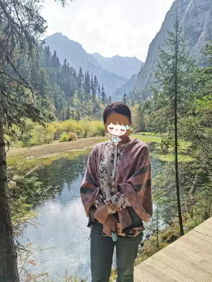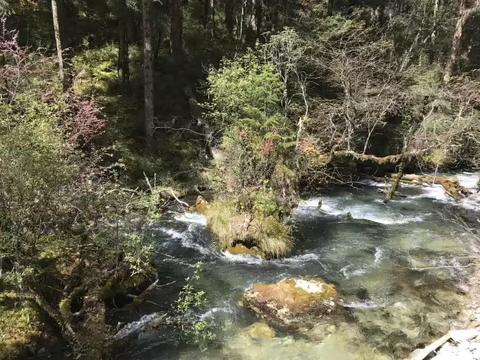 Jiuzhaigou Noon: When there is sun, it is hot, take off the down jacket in the morning and put it in the bag, and put on a large cashmere shawl in the shade to prevent cold.