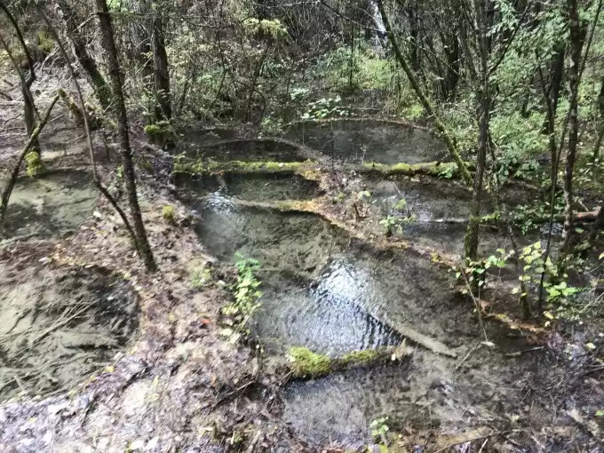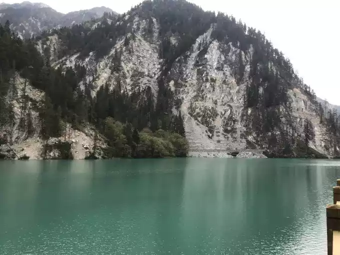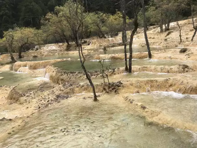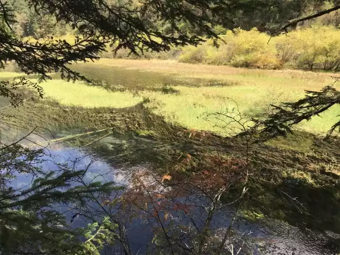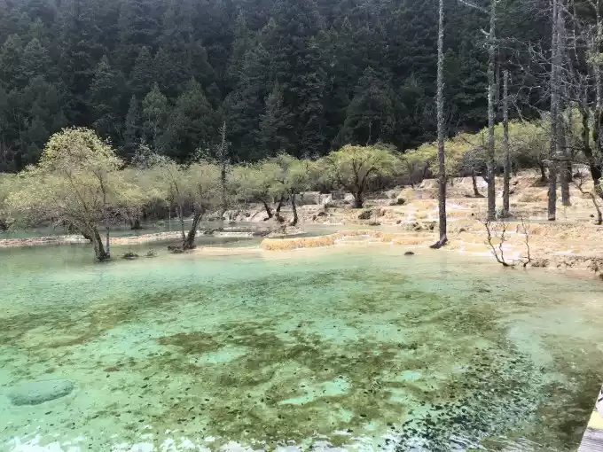 Shuanglong Sea , it can be seen that there are two bands of biotravertine embankments hidden under the water in the lake. The upper part of the lake embankment is travertine, and the lower part is moraine, like two dragons, like moving and static. This may have to be overlooked to get the essence.