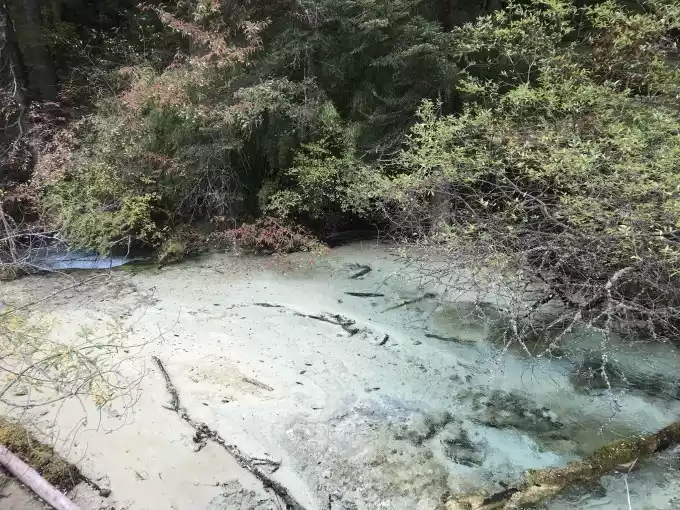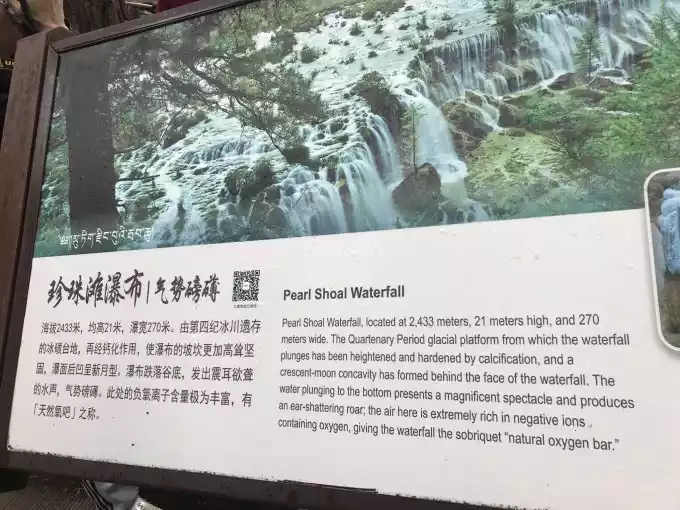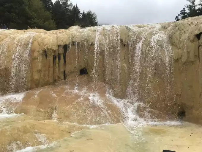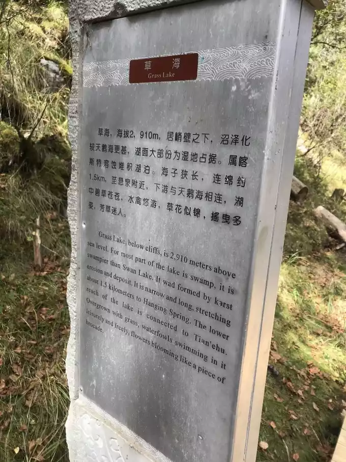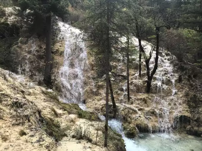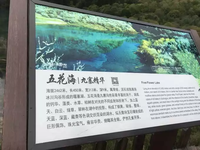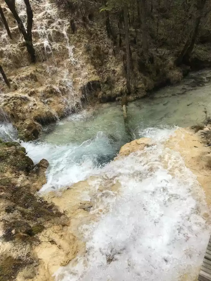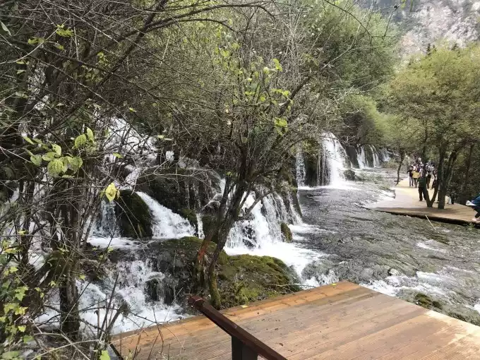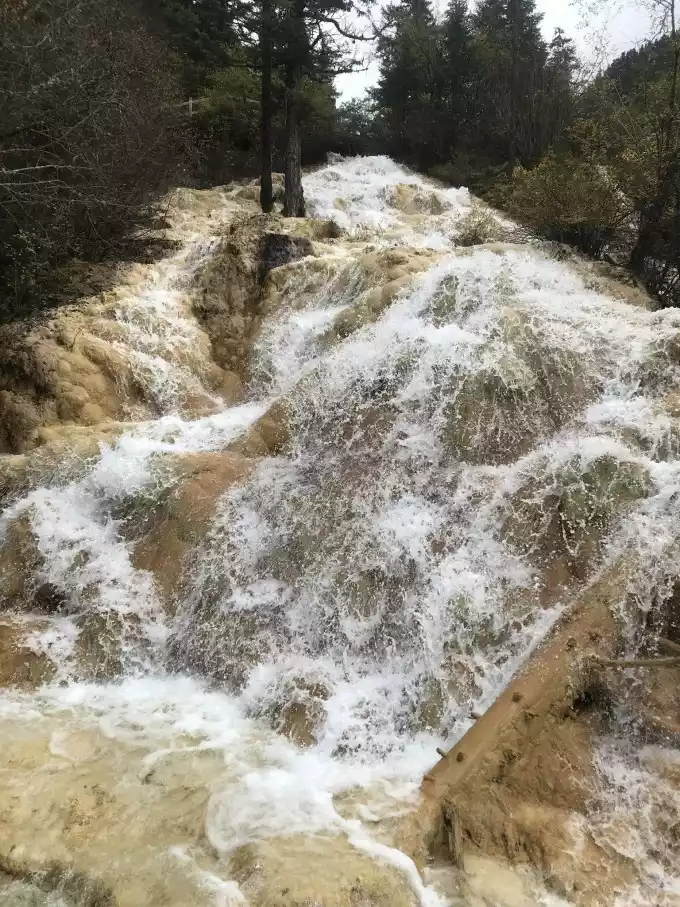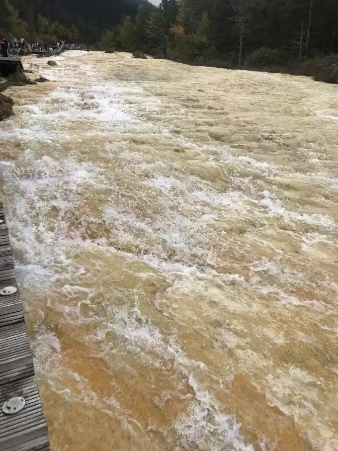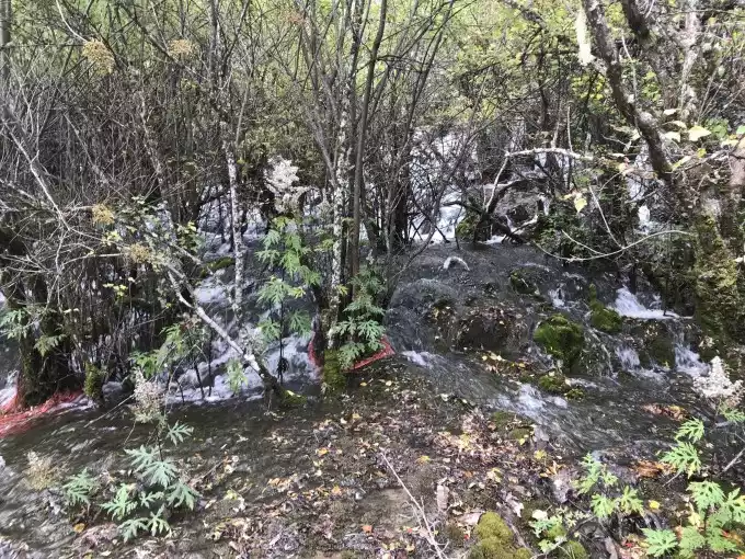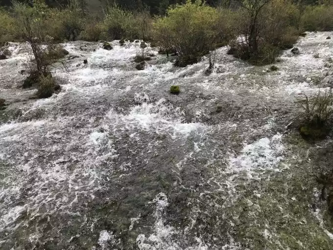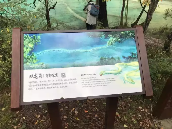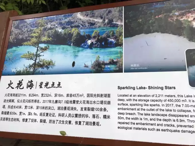 I feel that the main route of the second entrance ditch revolves around the waterfall, so I have to check in all the waterfalls. For the last stop, we plan the Shuanglonghai Waterfall. When I got off the spark sea, I was looking forward to a sunny day, and it is said that the light on the sea surface flashes like a spark in the sun. But today is cloudy, so naturally I can't see this picture. Seeing the comparison pictures before and after the earthquake on the propaganda board, it may be affected by the earthquake, and the appearance of the sea of sparks is not as good as before.