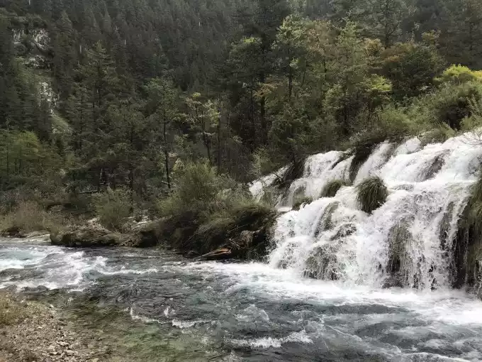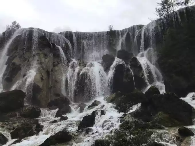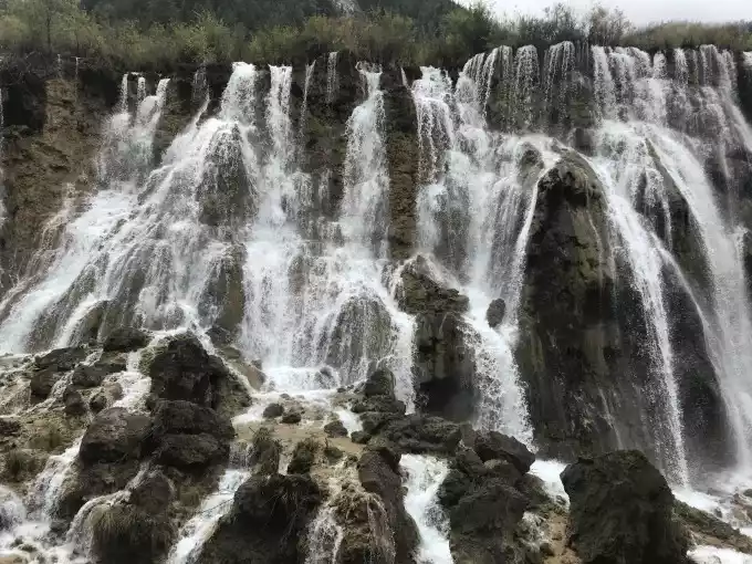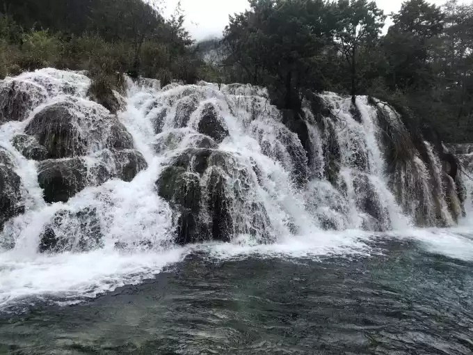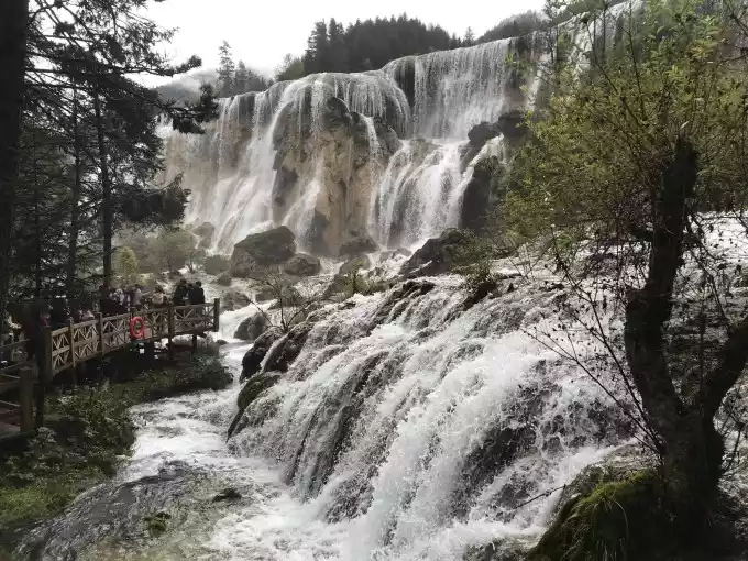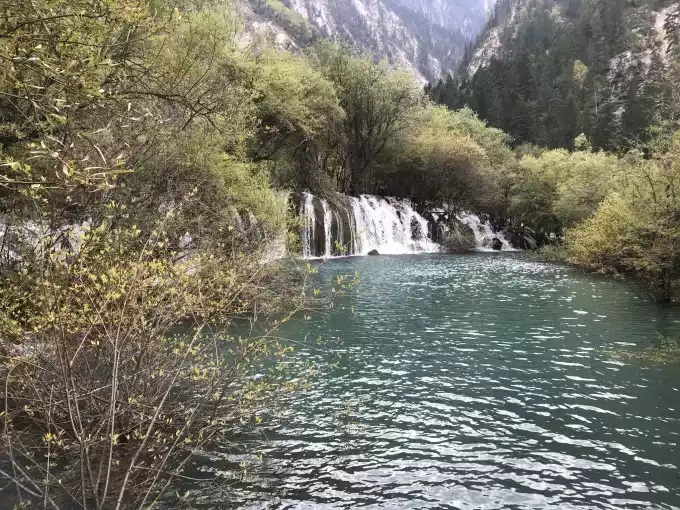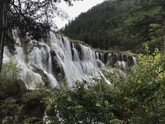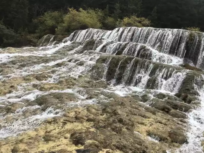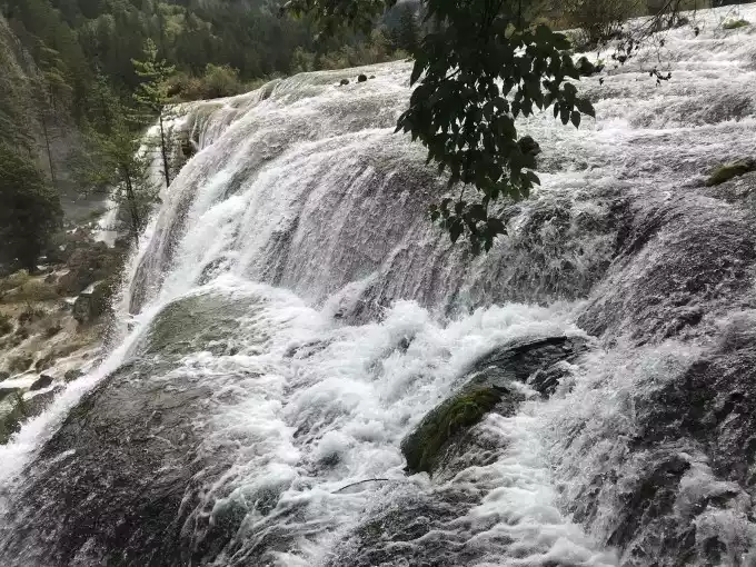 Among all the waterfalls in Jiuzhaigou , our favorite is the Pearl Beach Waterfall.
