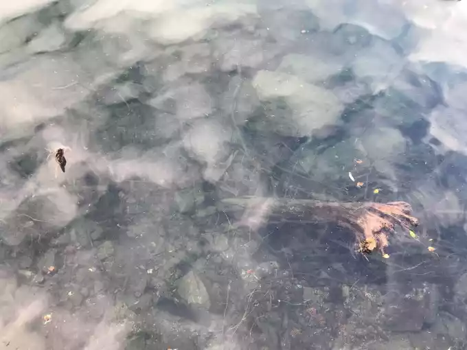 This water color is so beautiful! Just so gently and shallowly, not eating the fireworks of the world, enjoying the surrounding colorful leaves.