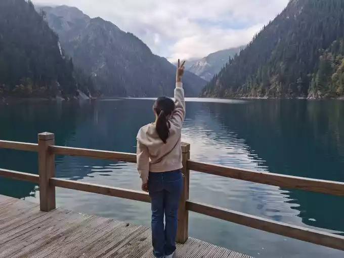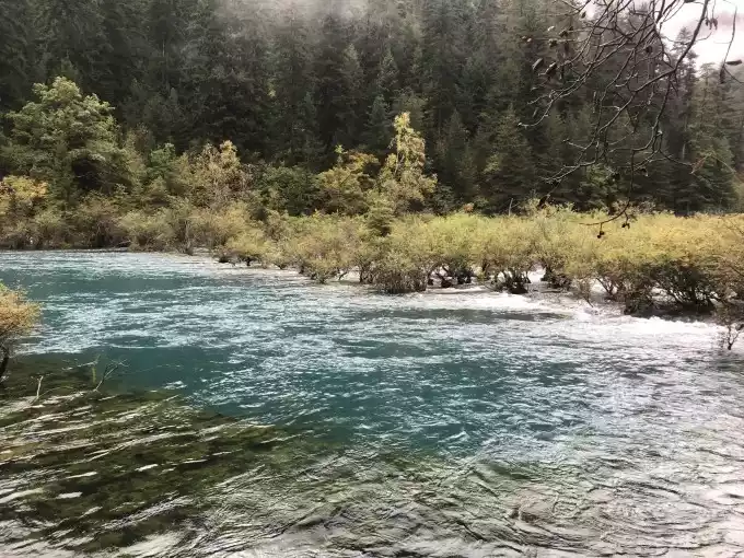 Jiuzhaigou After 3 p.m.: The sun is basically covered by clouds, a little cool and windy, continue to put on your down jacket.