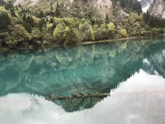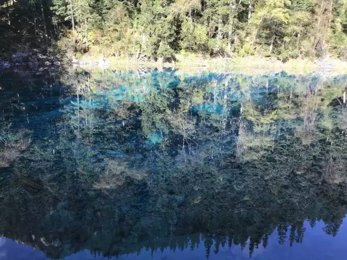 Changhai is a plateau dammed lake, and it is also the highest scenic spot in the Jiuzhaigou scenic spot. In the shallower part of the lake, you can also see the underwater tree trunks, as if sealed in the blue-green lake, immortal in the water.