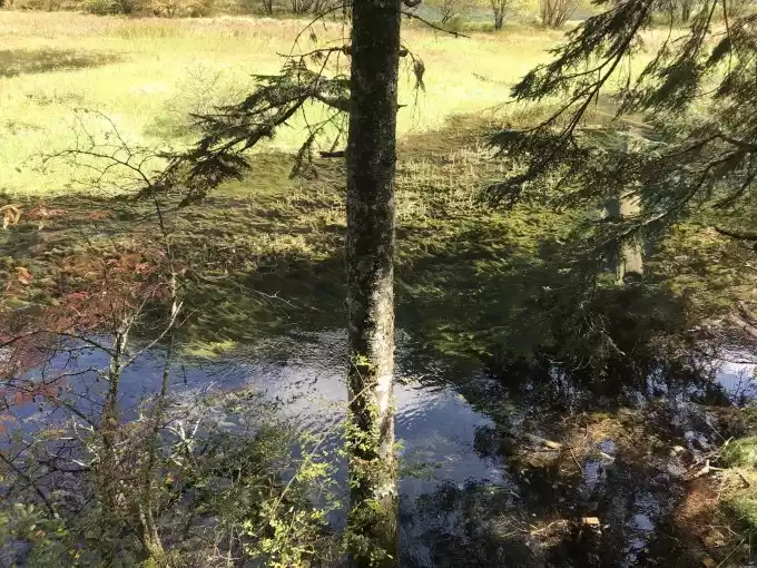 Spiegel Reflection Pool. When the water surface is calm, you can clearly see the reflection of the surrounding trees.