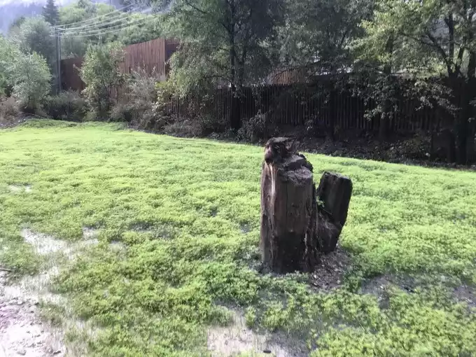 encountered a "roadblock tree" on the wooden plank road, which was very straight and lush with branches and leaves.