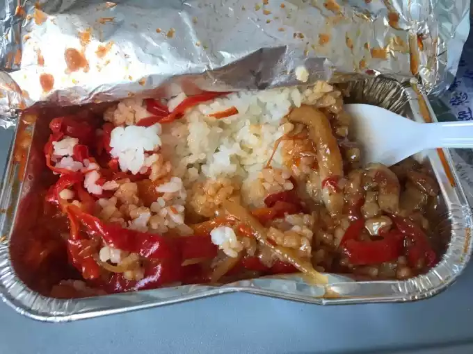 The flight from Wuxi to Jiuzhaigou was fully booked, and in order to respond to the atmosphere of the National Day celebration of the whole country, the five-star red flag was inserted on the luggage rack, a sea of red. Sichuan Airlines recently launched a booming in-flight meal, which is simply too unpalatable, there are not a few pieces of meat, and all kinds of mushy, and the shredded pork with red peppers is also tasteless, I want to ask, if it is an ethnic minority who does not eat pork, what are you prepared to do? I really don't know how the Sichuan Airlines food reviewed online came out.