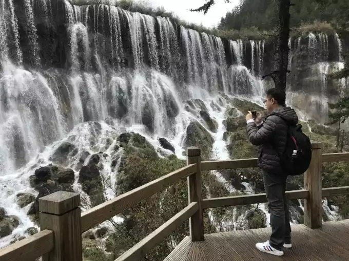 The tour route of Jiuzhaigou presents a "Y" shape, namely Zezhawagou on the left, Rizegou on the right, and Shuzheng Gou below. There will be an intersection of these three ditches - Nuorilang Waterfall, where a large service area has been established in the scenic area, with restaurants, shopping malls, smoking areas, police stations, etc., and you can also take a car here to transfer to various lines.