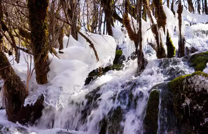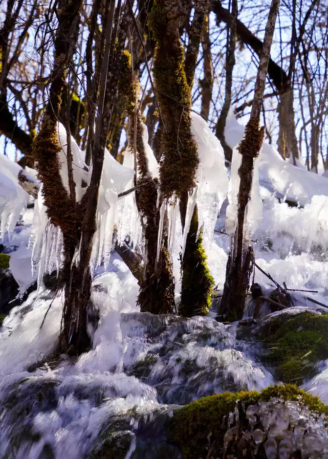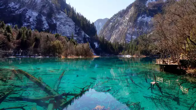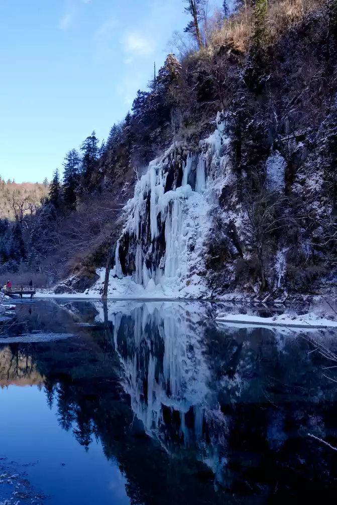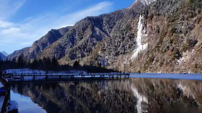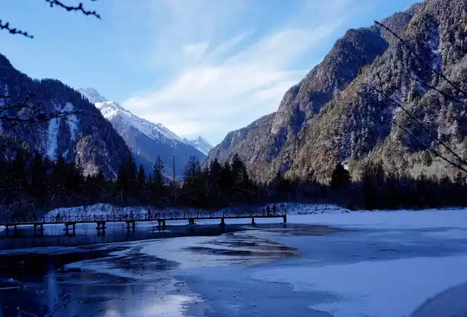 Although the lake was frozen because of winter, the scenery was still beautiful. I want to come back to see it in autumn.