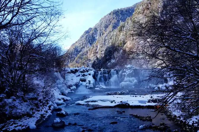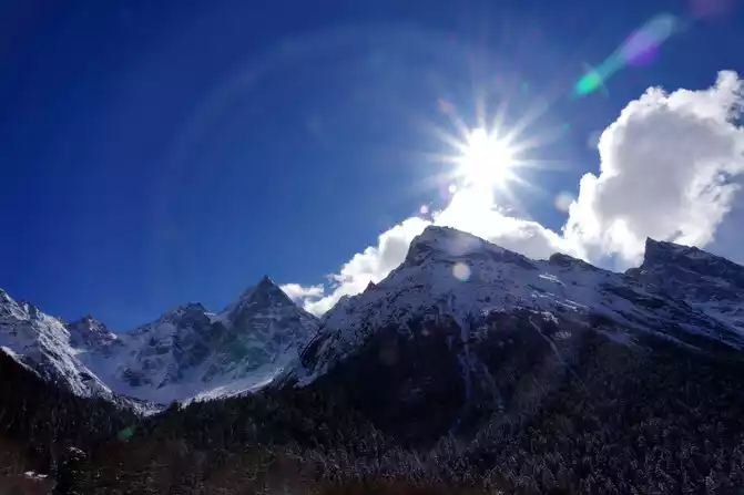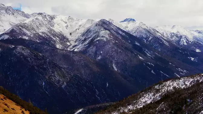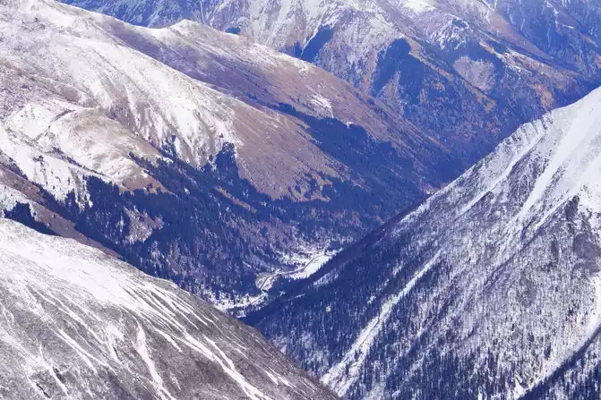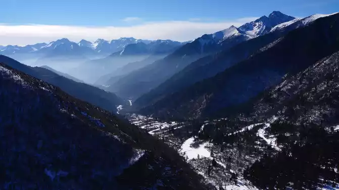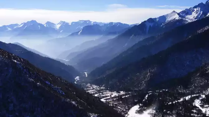 Depart after breakfast, driving along the Yaxi-Yakang Expressway. Arriving at [Lengqi Town] at noon, we transferred to the scenic shuttle bus at Changhaizi to reach Niubei Mountain.