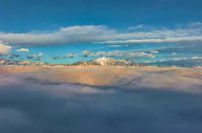 The sunset glow of Niubei Mountain is very far away. The leader took this photo with a drone.