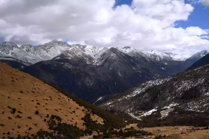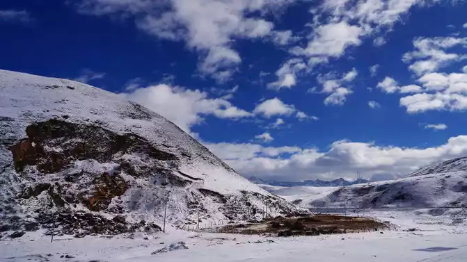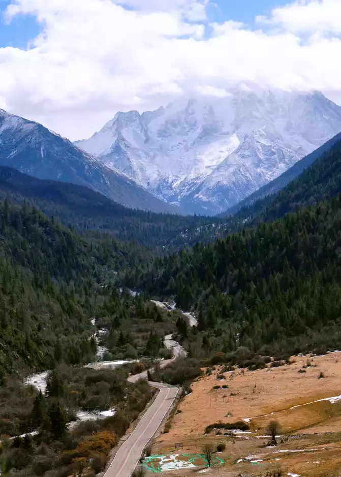 Continue on the road, and you can see the beautiful scenery of snow-capped mountains everywhere.