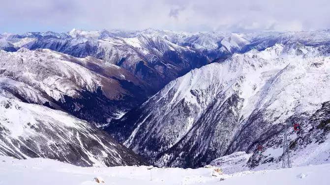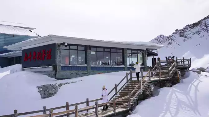 It is also the snow-capped mountain crossed by the Red Army during the Long March. This new internet celebrity is famous for the [World's Highest Cableway]. We took the cableway directly to the top of the glacier at a height of 1,500 meters (the cable car top is 4,860 meters above sea level) and went to the [World's Highest Café]. Due to the high altitude, we did not dare to drink coffee, but ordered a drink and enjoyed the beautiful scenery while drinking.